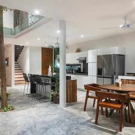Tulum Villa 4Br Jacuzzi Private Pool Gated Community features a refrigerator, a stovetop, and kitchenware provided in a fully-fitted kitchen. For tasting dishes of Southwestern cuisine, guests can head to Cafe Maya-Xel Tulum, which is only 450 metres away.